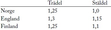 För trä med mindre hållfasthetsklasser kan det vara rimligt att anta k= 1.0. Det finns studier som visar att dimensionseffekten är mindre med mindre hållfasthetsklasser. T.ex: Rouger F, De Lafond C, El Quadrani A (1993) Structural properties of French grown timber according to various grading methods. CIB W 18 paper 26-5-1, Athens, USA.